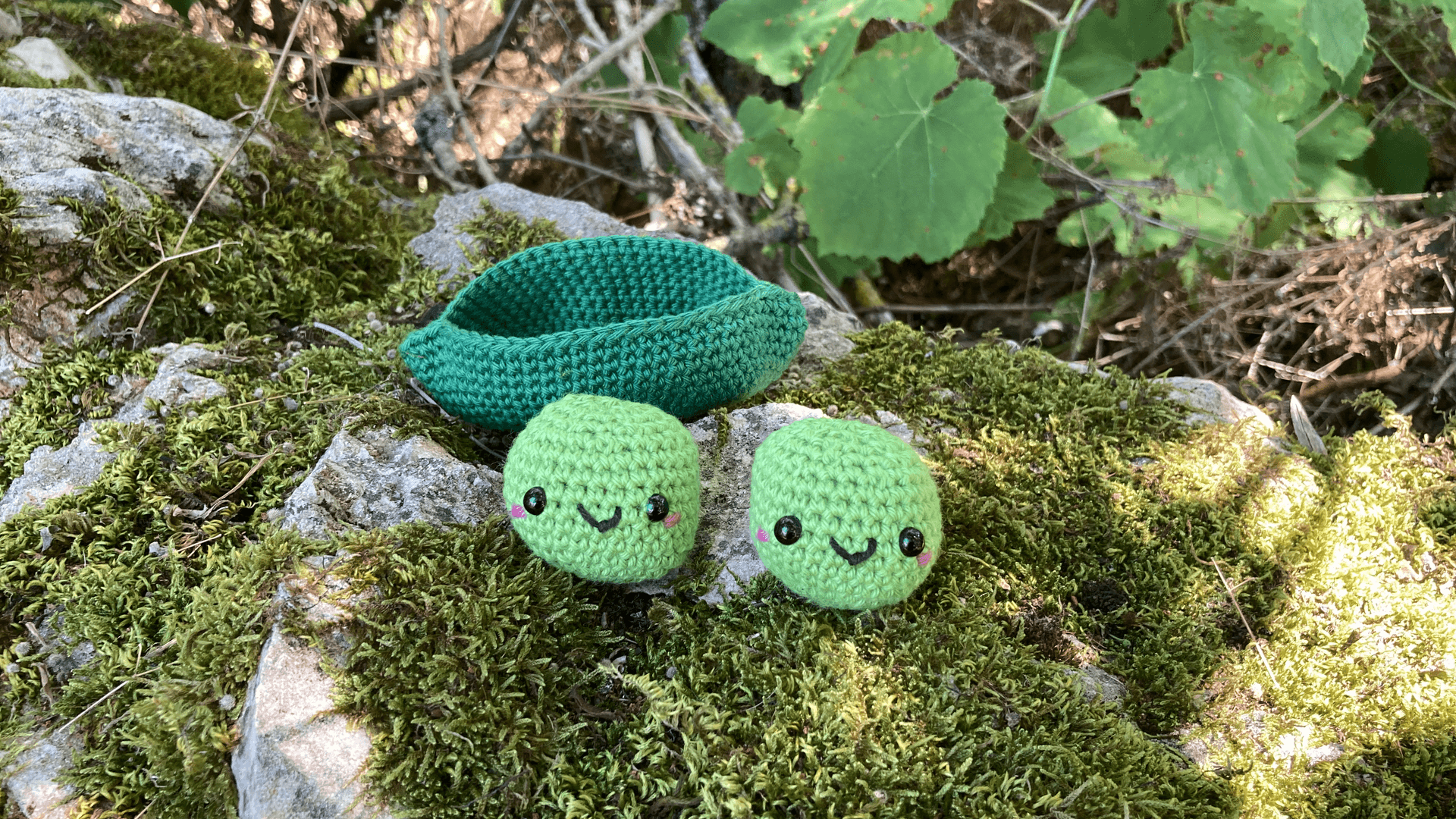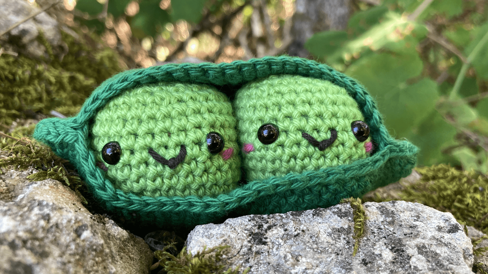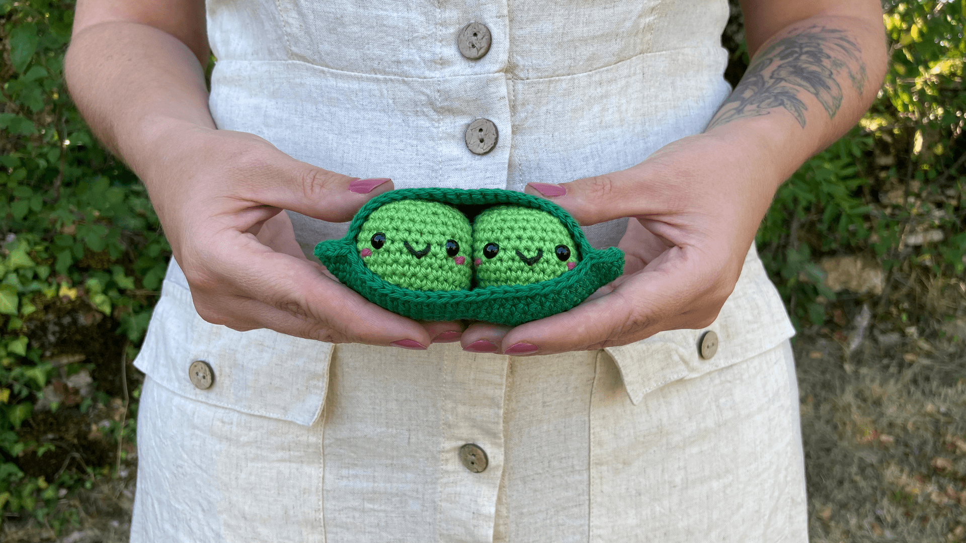 Le petit pois est le seul amigurumi pour lequel nous ne proposons pas la mise sur porte clé : la cosse et les deux petits pois sont trois éléments indépendants !