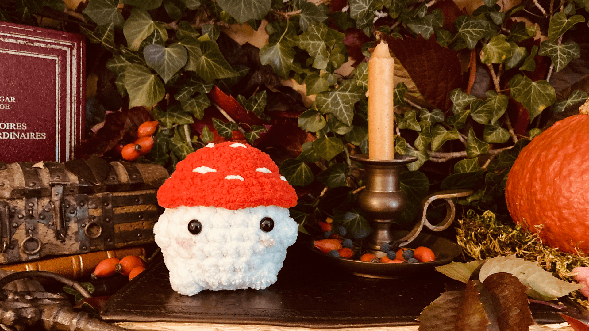 Le champignon fluffy fait main au crochet, doux et coloré sera parfait pour agrandir votre collection et décorer votre intérieur pendant la période automnal et les fêtes d'Halloween !
